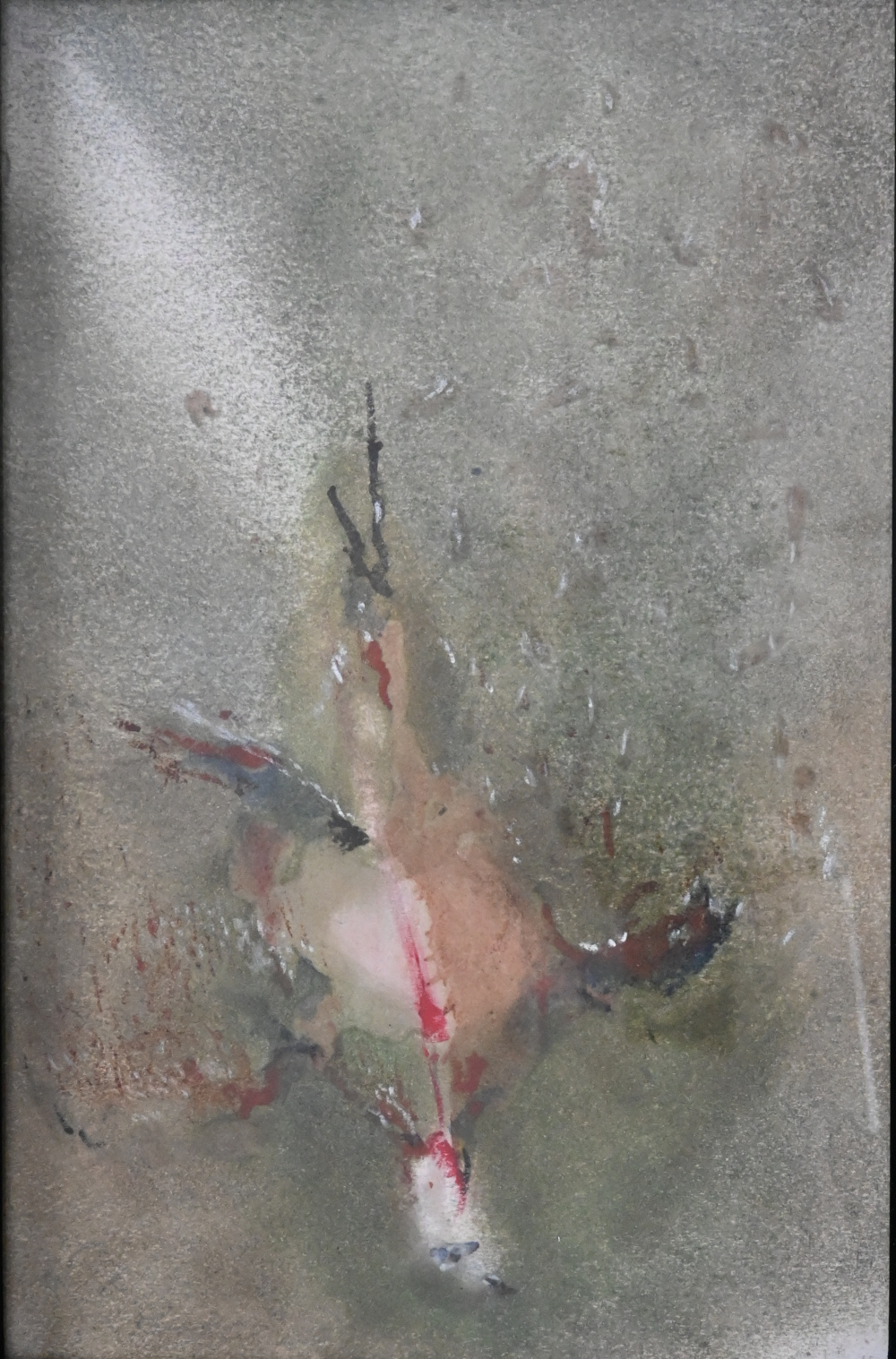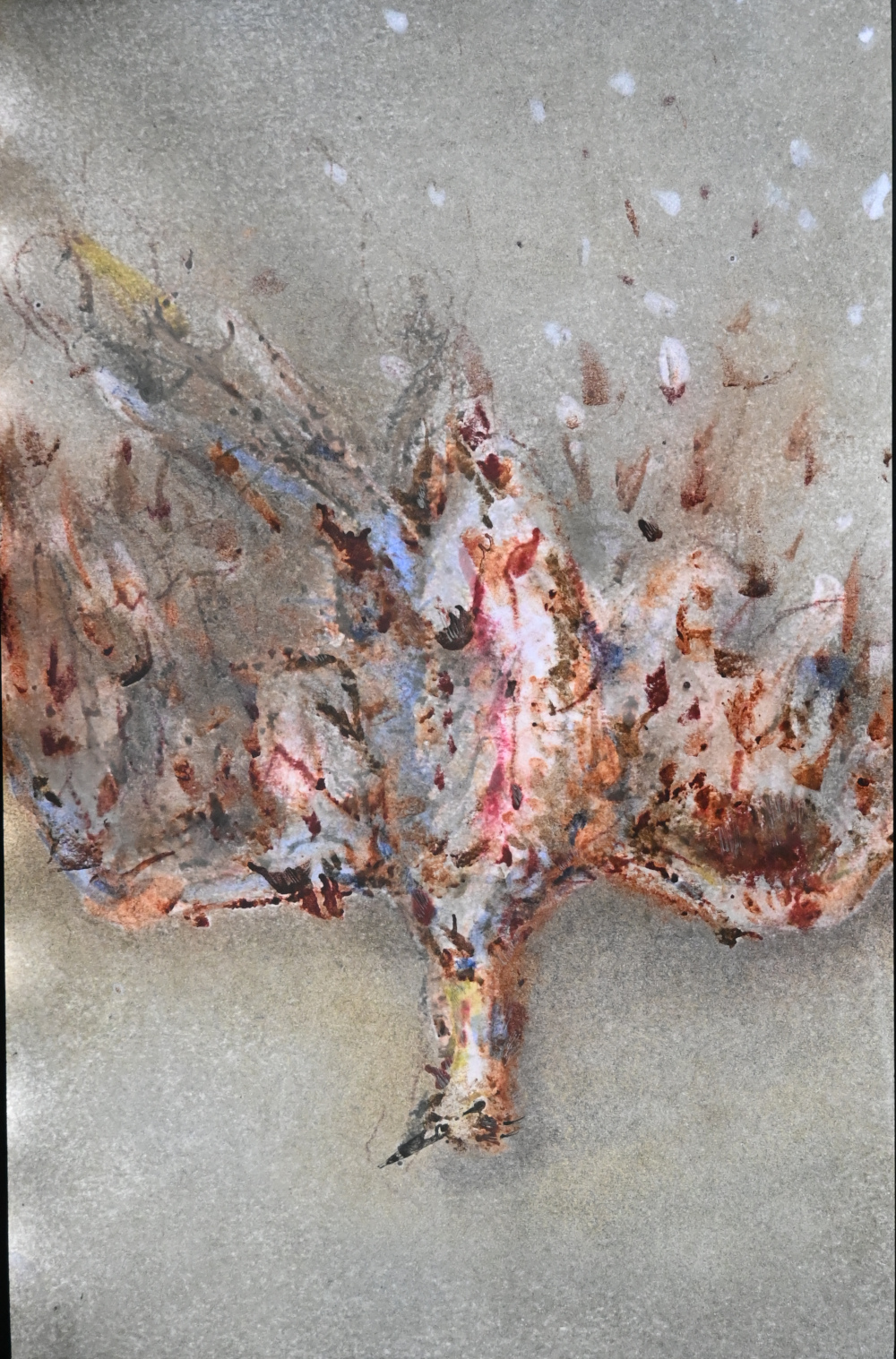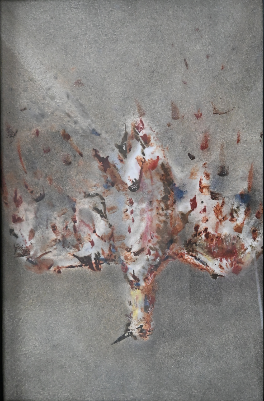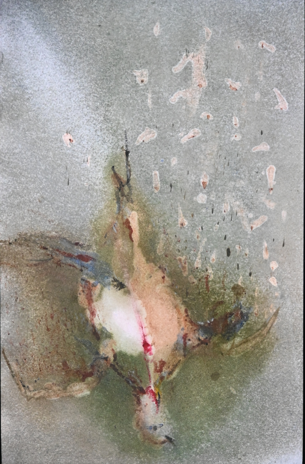 IVor einigen Jahren habe ich in Wien ein Stilleben gesehen, auf dem Fische, Krebse, Hasen und Vögel, sogar eine Zitrone zu sehen war. Die Tiere, gefangen oder auf der Jagd erlegt, gemalt im Zustand äußerster Natürlichkeit. Die Schuppen der Fische glänzten, im Fell des Hasen konnte man jedes Haar erkennen und bei den Vögeln jedes Flaumfederchen, alles extrem detailliert und lebensecht und vor allem frisch; der Fisch roch ganz bestimmt nicht. Das war optisch überwältigend, das Bild war auch noch riesig groß. Wie technisch versiert war der Maler, der Totes so lebendig und detailliert wiedergeben konnte; wie gut sein Erinnerungsvermögen, denn das Arragement konnte nur gedacht sein. Er hat tote Tiere wie lebende gemalt, nur der Effekt war wichtig. Und da fing es an, mich zu interessieren. Die Tiere nicht lebendig, sondern im Übergang zum Tod zu erfassen. Wenn sie geschossen wurden, wenn sie fallen, wenn sie hängen und ihre Federn verlieren.