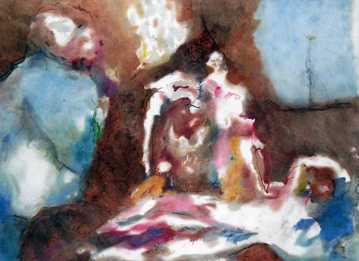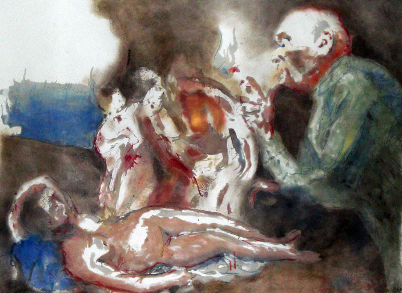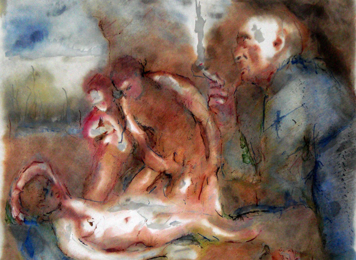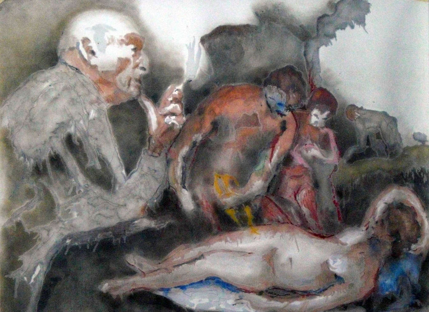 Es erstaunt mich immer noch, auf welche mythologische Themen das Barock zurück gegriffen hat, nur um Szenen zu erfinden, die mit maximal nacktem Personal bevölkert werden konnten. In diese historische Vorlage, welche im Titel das Thema Voyeurismus aufgreift, wollte ich einen weiteren Aspekt zufügen. Den Prototyp des voyeuristischem Sehens, der dieses Bild betrachtet. Immer männlich, immer mit einem scheinbaren Desinteresse, Distanz und Langeweile.